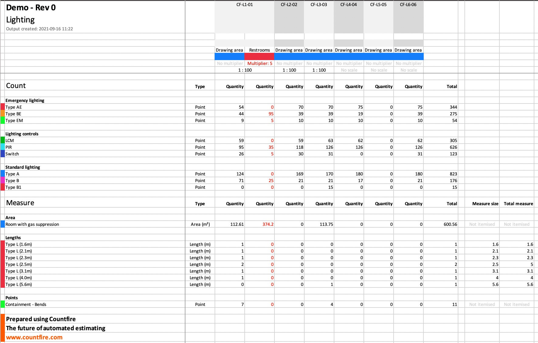 Once everything is counted you’ll have a full takeoff sheet which will break down each symbol, its name, colour and overall quantity for that project.