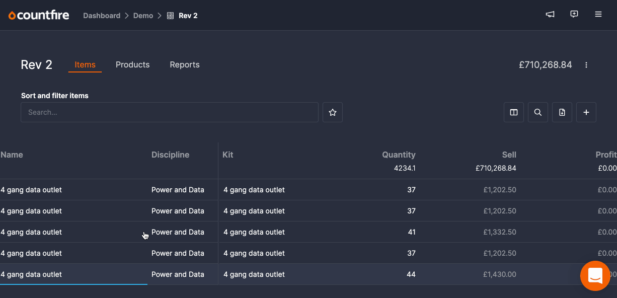 This means that if you regularly use a certain kit for a “switch”, Countfire will know to add this kit to any switches in your current estimate. The more estimates you price, the faster you can get to the end total cost as you don’t have to start from scratch every time.